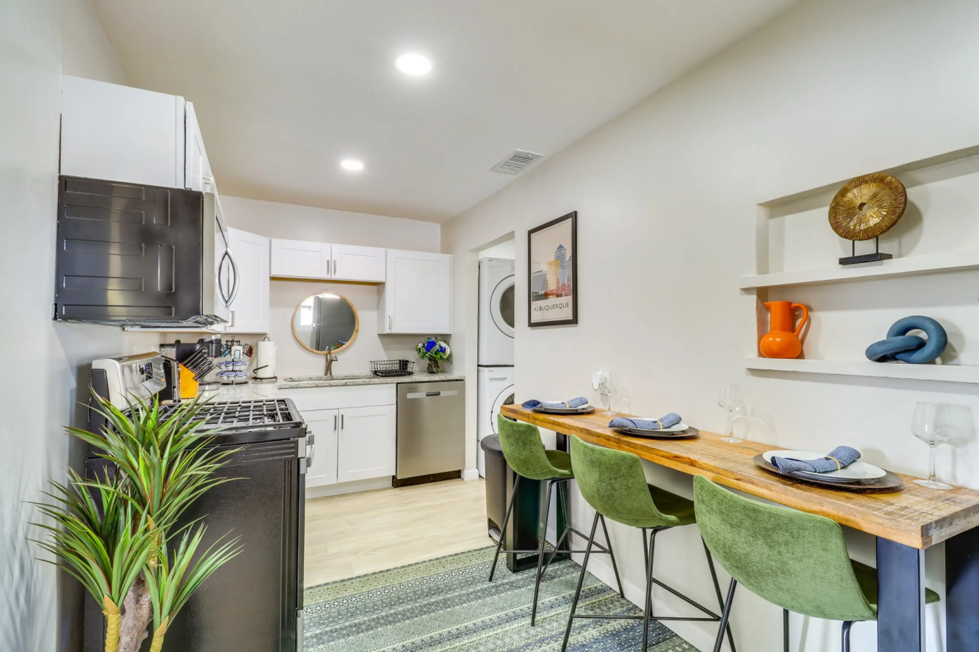 Immerse yourself in the heart of Albuquerque when you stay at this conveniently located vacation rental. Perfect for couples and solo travelers, this 1-bedroom, 1-bath duplex home boasts a colorful interior with essentials like Smart TVs and a full kitchen. Plus, you'll be within easy reach of popul...